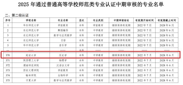 2025年10月20日,教育部公布普通高等公司师范类专业认证中期审核结果,谈球吧官方网站历史学(师范)专业顺利通过审核,继续保持二级认证有效期。此次审核是对我专业2022年通过认证后持续改进成效的全面检验,标志着公司在教师教育领域迈上新的台阶。