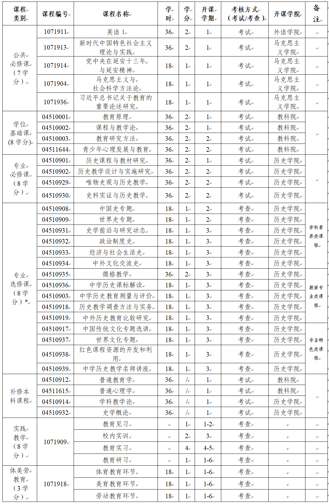 学科教学(历史)领域专业学位硕士研究生课程设置