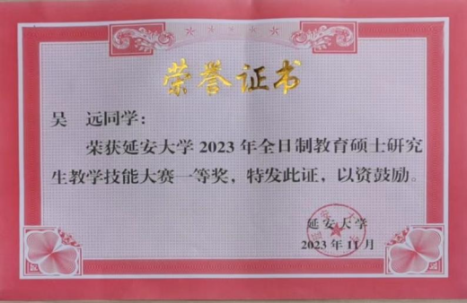3、2023年11月2023级硕士研究生吴远荣获谈球吧2023年全日制教育硕士研究生教学技能大赛二等奖