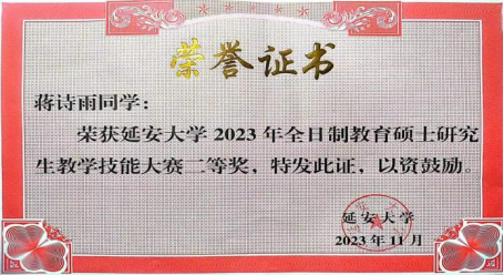 4、2023年11月2023级硕士研究生蒋诗雨荣获谈球吧2023年全日制教育硕士研究生教学技能大赛二等奖